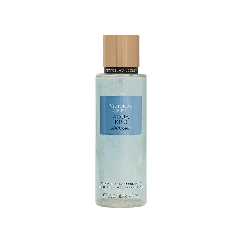 Aqua Kiss Shimmer de Victoria’s Secret (250ml) es un body mist floral-acuático para mujeres que refresca y aporta un brillo radiante y sutil a la piel. Destaca por notas frescas de fresia, manzanilla, aloe vera y acordes marinos, ofreciendo un aroma ligero, romántico y duradero, ideal para el uso diario o dar un toque glamoroso.