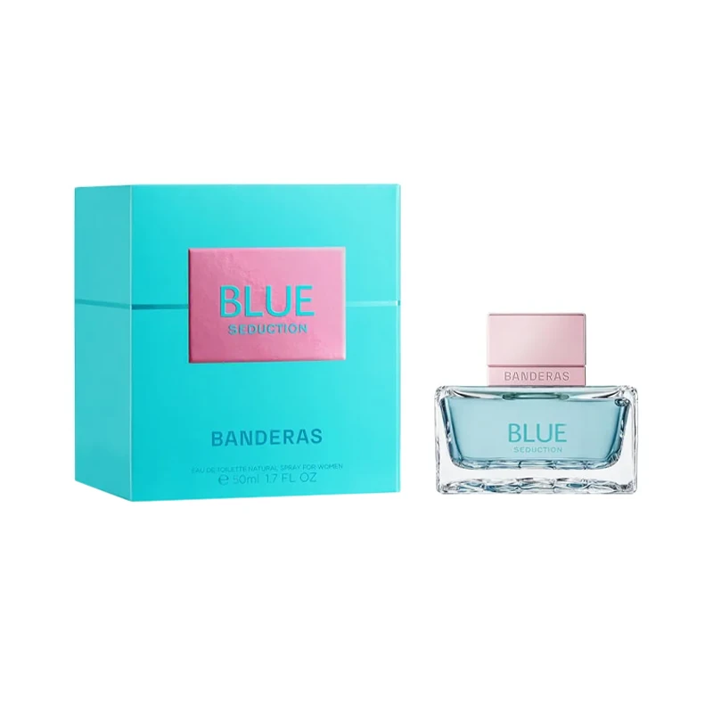 Blue Seduction de Antonio Banderas es una fragancia de la familia olfativa Floral Acuática para Mujeres. Blue Seduction se lanzó en 2008. Blue Seduction fue creada por Olivier Cresp, Elisabeth Vidal y Rosendo Mateu. Las Notas de Salida son melón, bergamota, pera y hojas de violeta; las Notas de Corazón son peonía, jazmín, lirio de los valles (muguete), gardenia y rosa de Bulgaria (rosa Damascena de Bulgaria); las Notas de Fondo son frambuesa, pachulí, almizcle y benjuí.