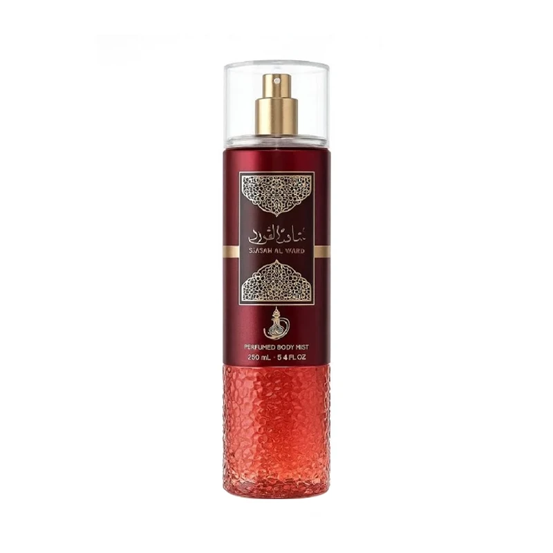 Sabah Al Ward de Al Wataniah Body Mist 250 ml para mujeres es una bruma corporal que despierta la frescura de la mañana con delicadas notas de rosa y matices frutales. Su carácter dulce y empolvado se funde con un fondo cálido de almizcle y vainilla, envolviendo la piel en un halo femenino y sofisticado. Ligera, encantadora y perfecta para acompañar tu día con un toque de elegancia natural.